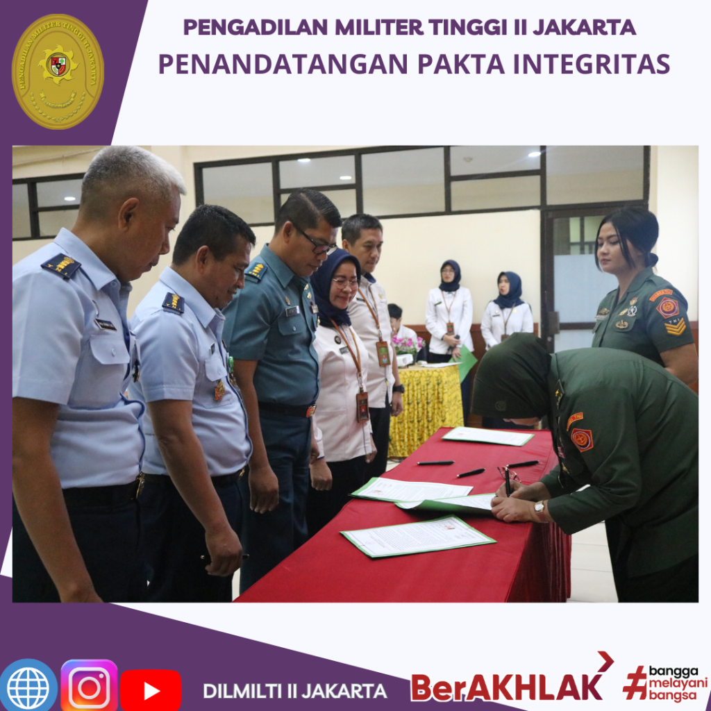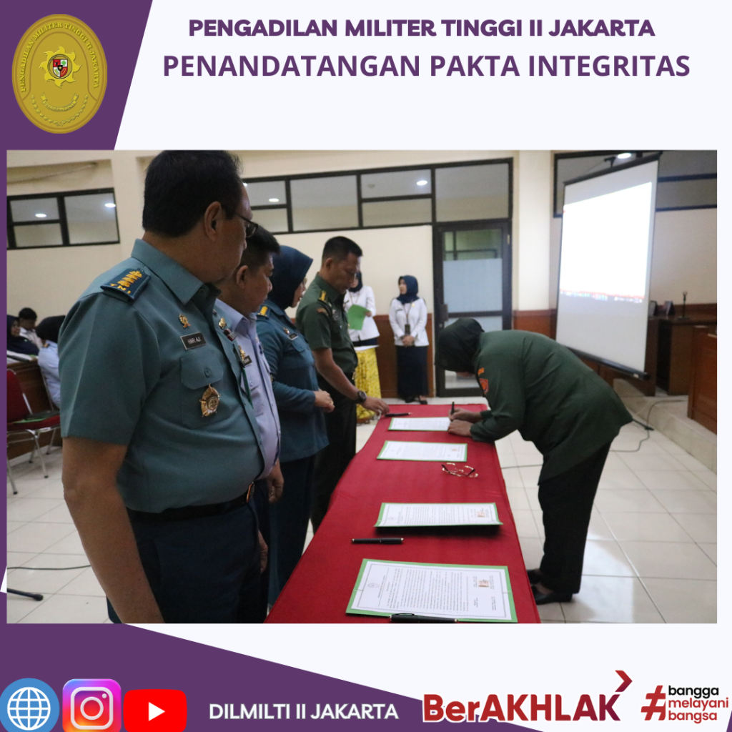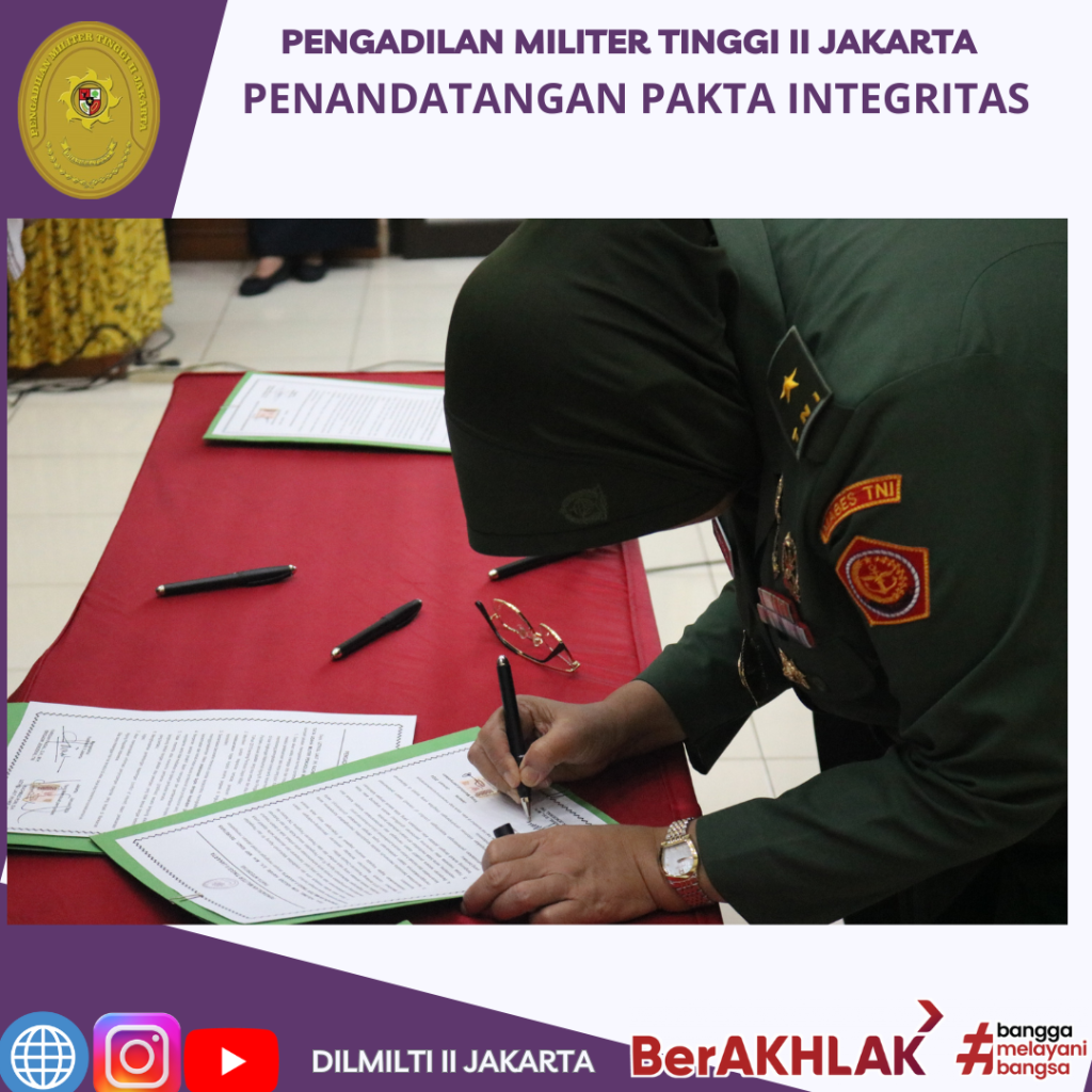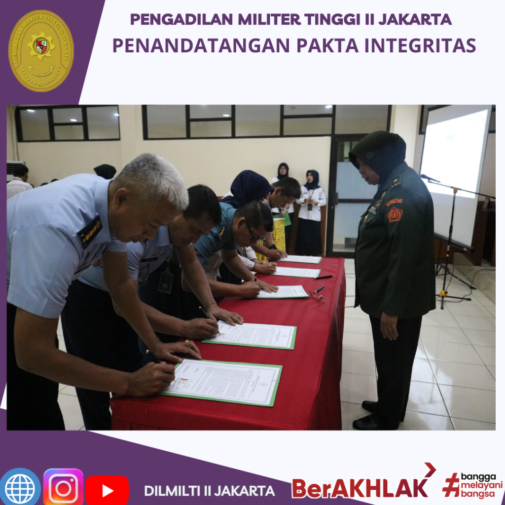 Kegiatan diawali dengan pembacaan Pakta Integritas oleh Kadilmilti dan diikuti oleh seluruh Anggota, dan dilanjutkan dengan Penandatanganan Pakta Integritas oleh masing-masing anggota sebagai pernyataan atau janji tentang komitmen untuk melaksanakan segala tugas dan tanggungjawab sesuai dengan ketentuan yang berlaku.