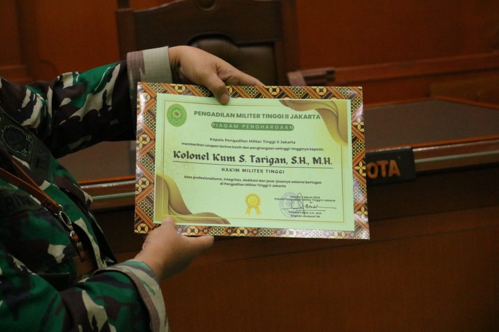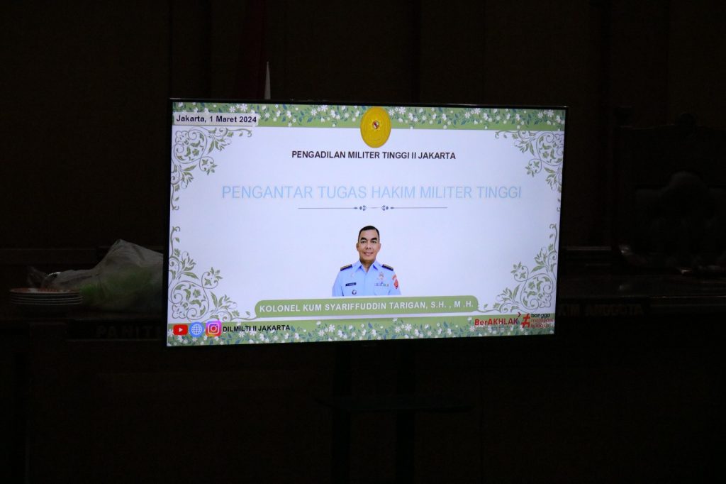 Jakarta 1 Maret 2024, Pengadilan Militer Tinggi II Jakarta melaksanakan acara pelepasan Anggota yaitu Hakim Militer Tinggi yang mutasi ke Pengadilan Militer Tinggi I Medan, acara pelepasan dilaksanakan secara sederhana bertempat di Ruang Sidang Utama. Acara diawali dengan pesan dan kesan dari Perwira yang dilepas yaitu Kolonel Kum Sariffuddin Tarigan, S.H., M.H. Disampaikan pula sepatah kata dari Kepala Pengadilan Militer Tinggi II Jakarta, Brigadir Jenderal TNI Faridah Faisal, S.H., M.H. yang mengucapkan selamat bertugas di tempat yang baru dan berpesan agar dimana pun bertugas tetap berintegritas, bertanggung jawab dan ikhlas dalam melaksanakan tugas dan juga semoga diberikan kemudahan dan kelancaran dalam pelaksanaan tugas yang baru.