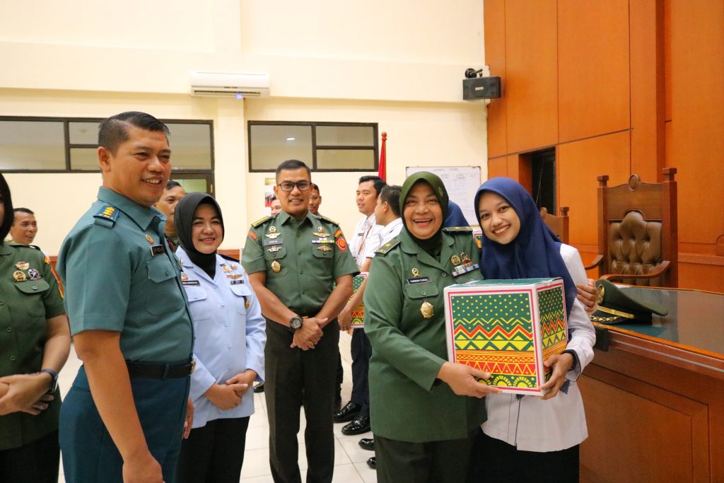 Jakarta, 25 Maret 2024 Kepala Pengadilan Militer Tinggi II Jakarta Brigadir Jenderal TNI Faridah Faisal, S.H., M.H. memberikan bingkisan lebaran kepada Anggota Golongan II dan para PPNPN. Bingkisan lebaran ini diberikan selain untuk membantu para anggota golongan II dan PPNPN juga sebagai wujud perhatian, penghormatan, dan untuk mempererat tali silaturahmi pimpinan dengan para anggota.