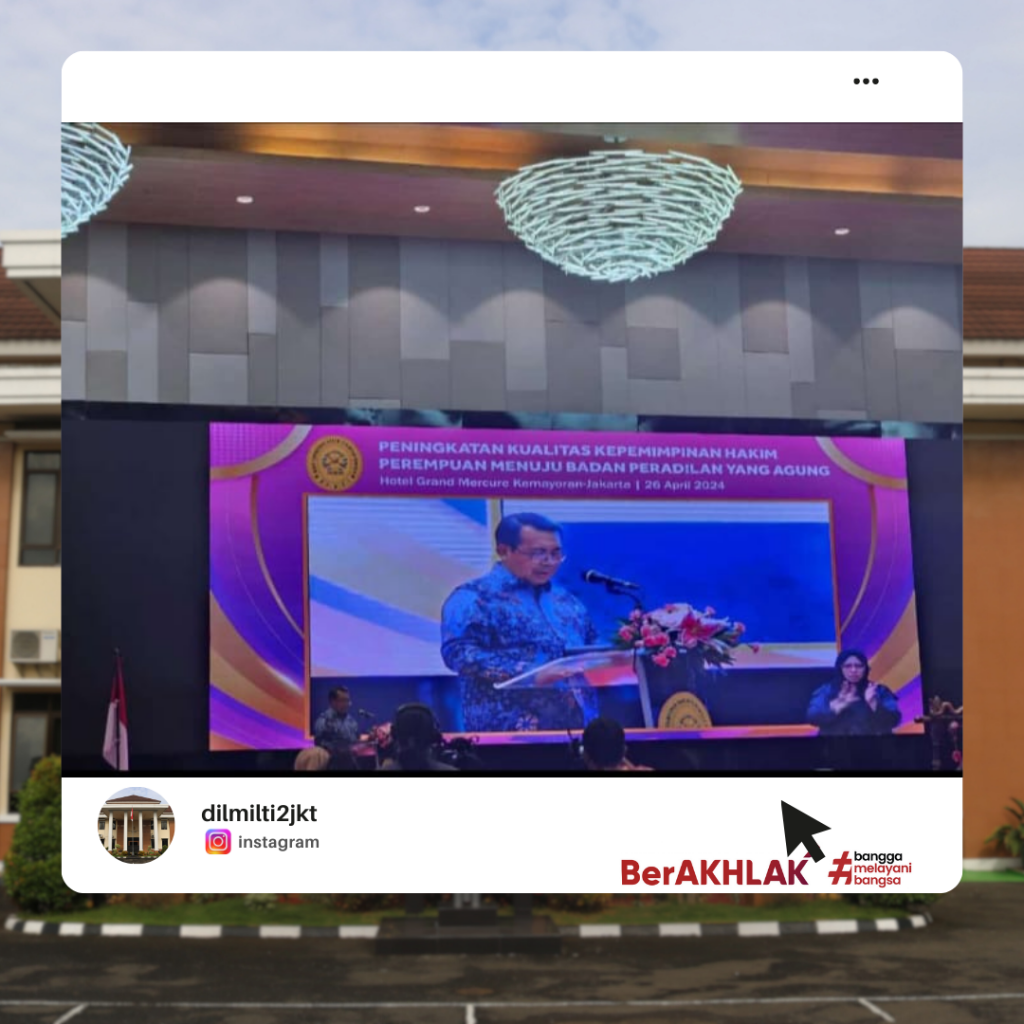 Jakarta, Jum’at 26 April 2024 bertempat di Ballroom Magnolia Hotel Mercure Kemayoran Jakarta Pusat, Laksamana Pertama TNI Tuty Kiptiani, S.H., M.H. Kepala Pengadilan Militer Tinggi II Jakarta dan seluruh Hakim perempuan di Pengadilan Militer Tinggi II Jakarta turut menghadiri undangan Seminar Ikatan Hakim Perempuan Indonesia. Kegiatan diikuti oleh Hakim Perempuan seluruh Indonesia sebagai kelanjutan dalam rangka memperingati HUT Ikatan Hakim Indonesia ke 71 yang mengusung tema :