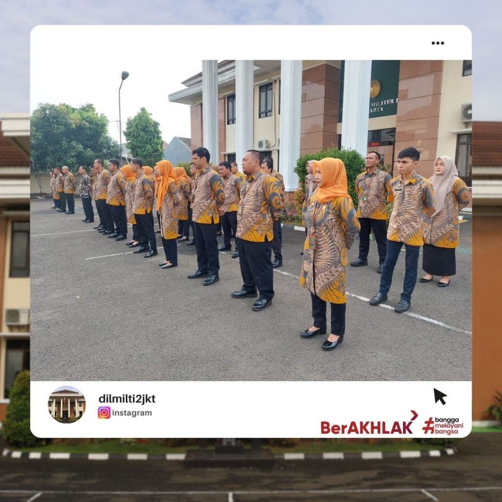 Jakarta, Kamis 2 Mei 2024, Pengadilan Militer Tinggi II Jakarta seperti biasanya mengadakan Apel Pagi, namun apel pagi kali ini sedikit berbeda karena dipimpin oleh Kepala Pengadilan Militer Tinggi II Jakarta yang baru sebagai pengambil apel, yaitu Laksamana Pertama TNI Tuty Kiptiani, S.H., M.H.