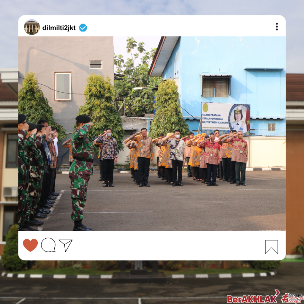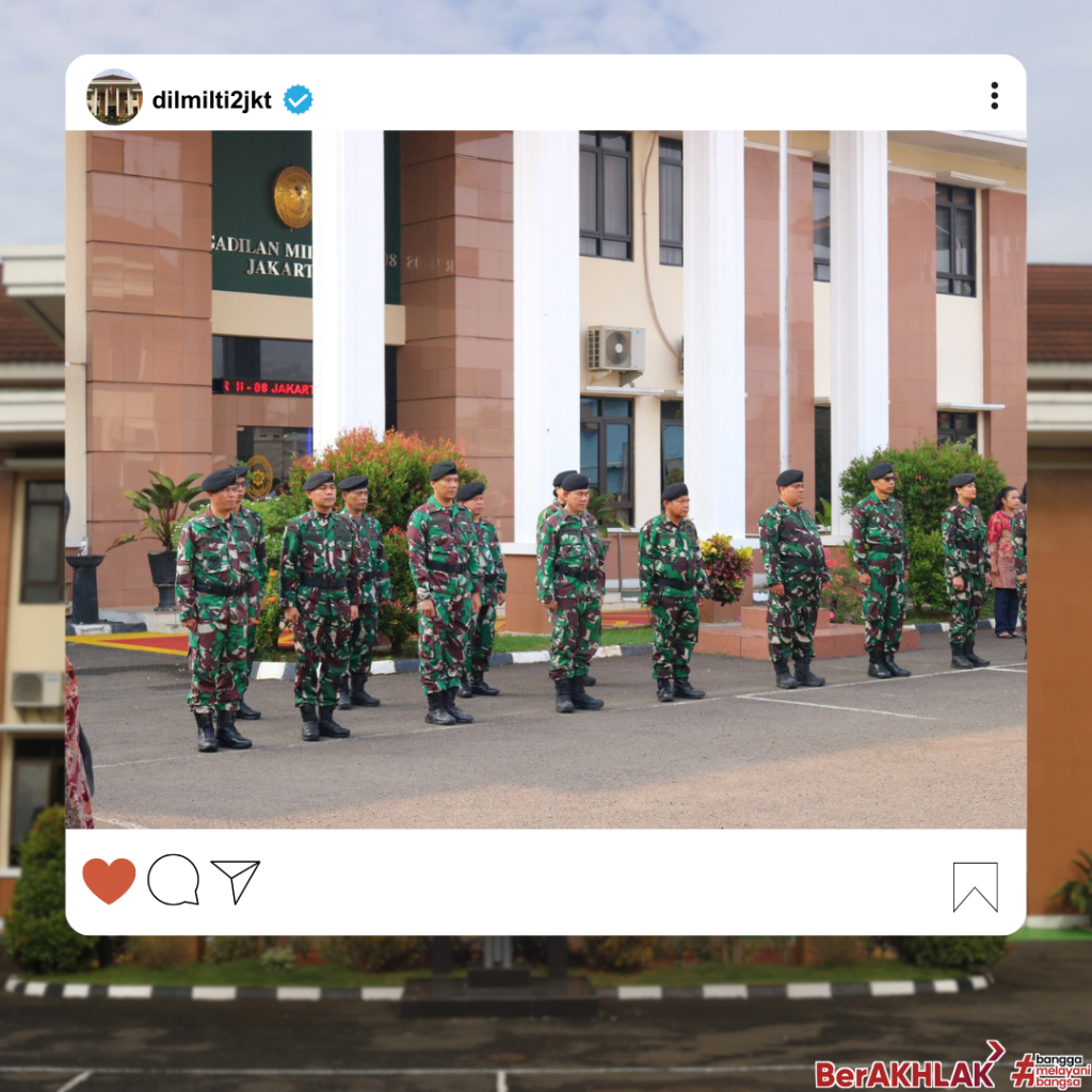 Jakarta, Jumat, 17 Mei 2024 dilaksanakan Upacara Bendera di Lapangan Apel Pengadilan Militer Tinggi II Jakarta dengan Inspektur Upacara Kadilmilti Laksma TNI Tuty Kiptiani, S.H, M.H. Upacara diikuti oleh Personel TNI, ASN Dan PPNPN pada Pengadilan Militer Utama, Pengadilan Militer Tinggi II Jakarta dan Pengadilan Militer II-08 Jakarta. Inspektur Upacara membacakan amanat dari KASUM TNI yang untuk menjadi perhatian, yaitu :
