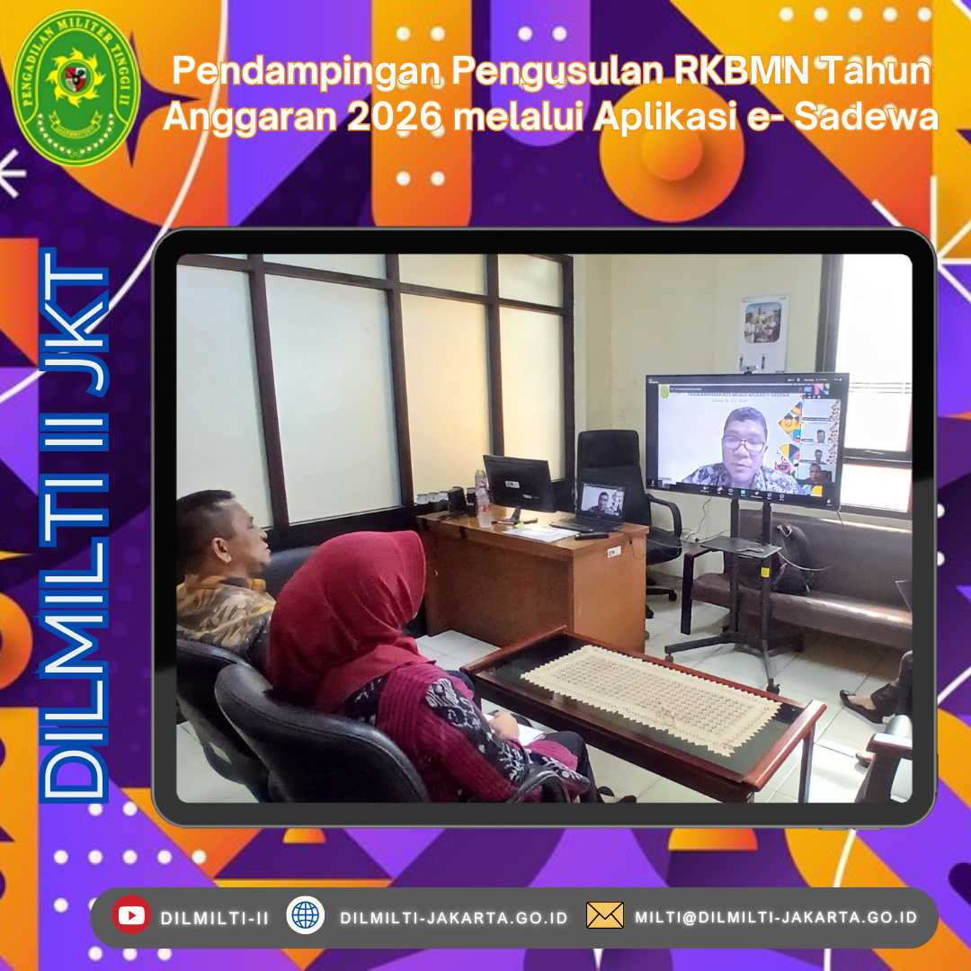 Kamis, 18 Juli 2024. Pengadilan Militer Tinggi II Jakarta yang diwakili oleh Sekretaris, Kolonel Kum Abuzar Hafari, S.H., M.H. Kasubbag Keuangan dan Pelaporan, Eva Morina, S.Kom, Kasubbag Tata Usaha dan Rumah Tangga, Mikun, A.Md. sejumlah pejabat fungsional serta ASN yang bertugas pada bagian BMN, Keuangan, dan Perencanaan mengikuti zoom pendampingan pengusulan RKBMN TA 2026 melalui Aplikasi e-Sadewa.