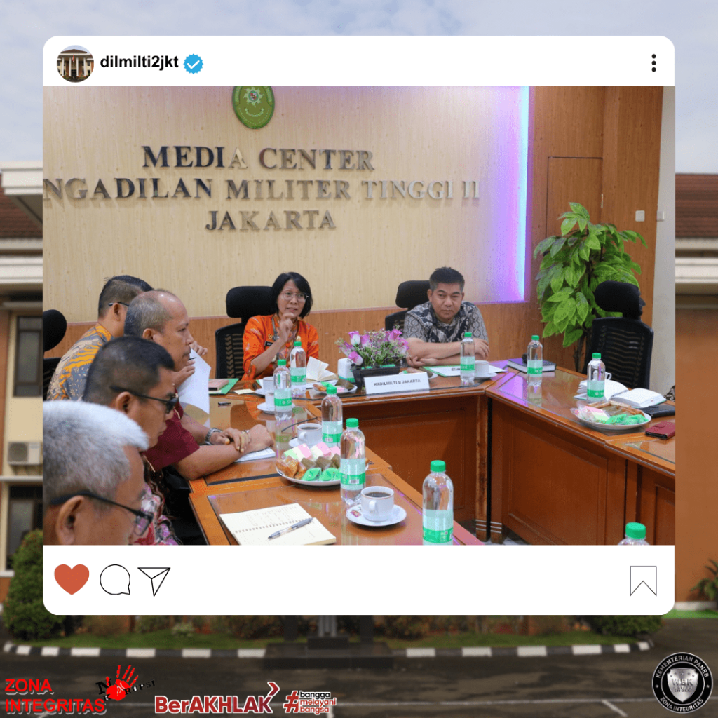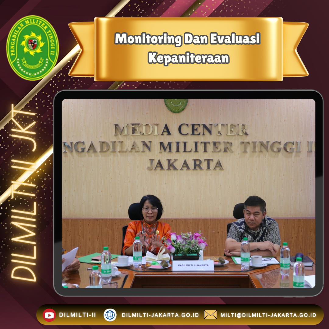 Jakarta, 29 Agustus 2024. Kepala Pengadilan Militer Tinggi II Jakarta Laksamana Pertama TNI Tuty Kiptiani, memimpin langsung kegiatan rapat monitoring dan evaluasi Kepaniteraan pada Pengadilan Militer Tinggi II Jakarta dengan didampingi oleh Waka Dilmilti, Rapat monitoring dan evaluasi diikuti para Hakim Militer Tinggi, Panitera, Panitera Muda dan Panitera Pengganti, rapat dilaksanakan di Ruang Media Center.