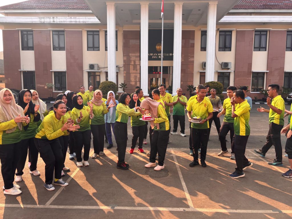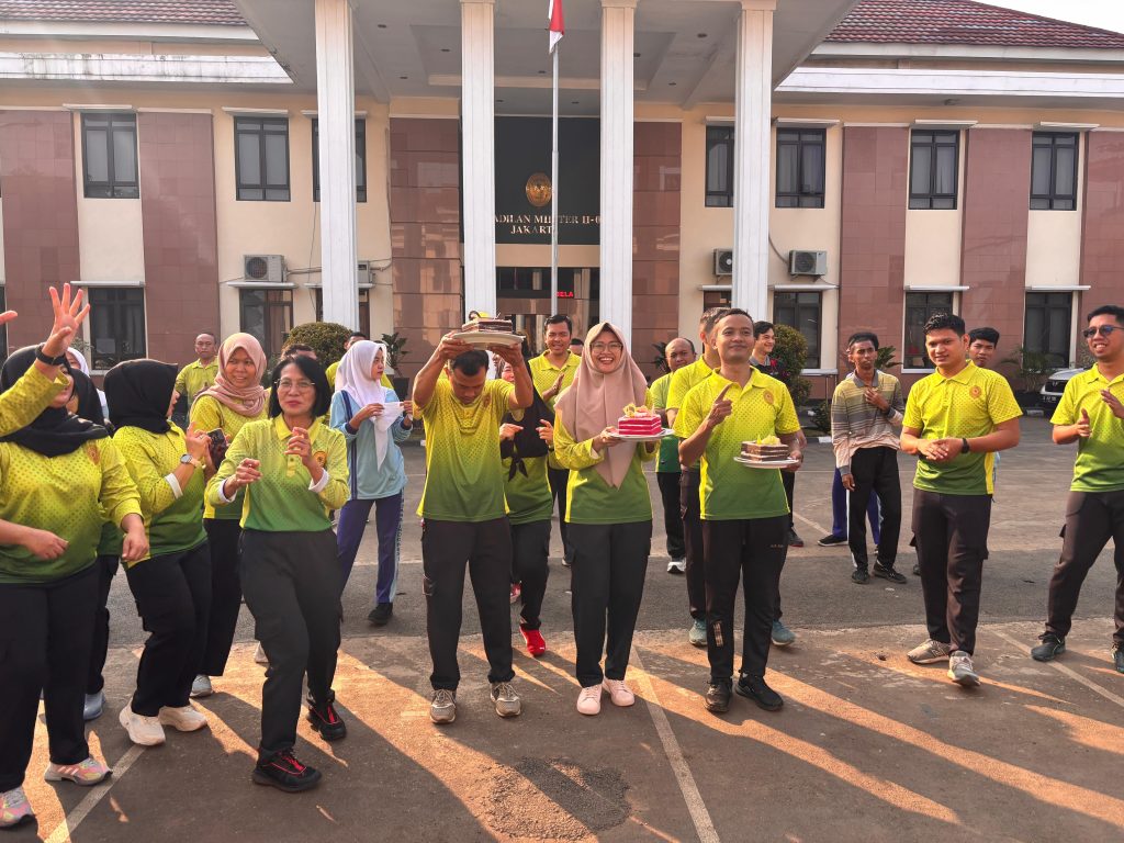 Sesaat selepas Olah raga jalan santai dan senam, Kepala Pengadilan Militer Tinggi II Jakarta Laksamana Pertama TNI Tuty Kiptiani memberikan kejutan kue ulang tahun untuk anggota yang berbahagia di bulan Juli. Selamat ulang tahun buat Winda Permatasari, Yuli Andriyadi dan Bro Imron semoga panjang umur, sehat selalu, bahagia dan sukses buat kalian 🎂❤️