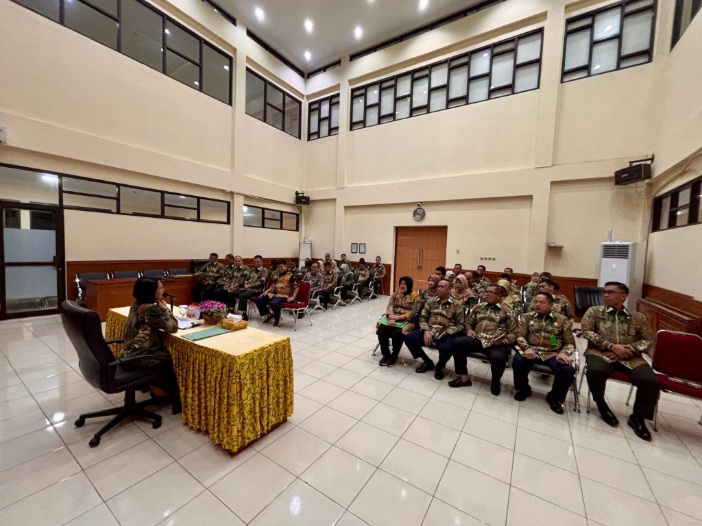 Jakarta, 4 September 2025. Kepala Pengadilan Militer Tinggi II Jakarta Laksamana Pertama TNI Tuty Kiptiani, S.H., M.H. memberikan pembinaan dan sekaligus mengevaluasi kinerja bulan Agustus 2025. Kegiatan dilaksanakan di Ruang Sidang Utama dengan diikuti oleh seluruh anggota.