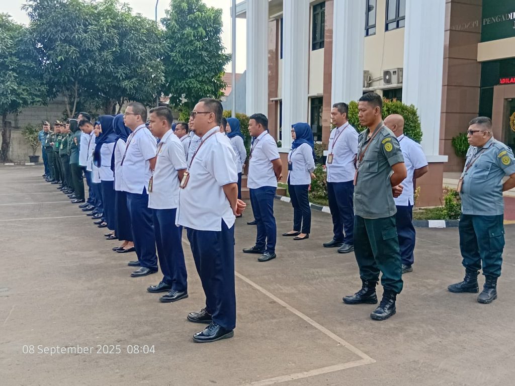 Jakarta, 8 September 2025. Kepala Pengadilan Militer Tinggi II Jakarta Laksamana Pertama TNI Tuty Kiptiani, S.H., M.H. memimpin Kegaitan Apel Pagi, pada kesempatan ini beliau mengecek satu persatu kelengkapan atribut anggota dan kerapian dari penampilan para anggota.