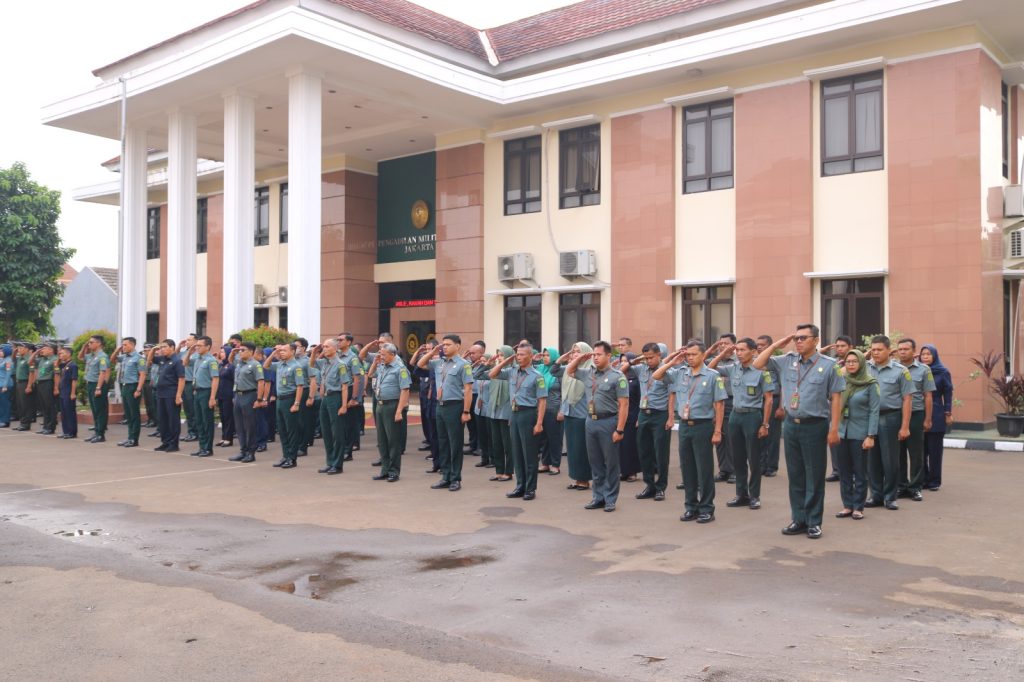 Jakarta, 17 September 2025. Anggota Pengadilan Militer Tinggi II Jakarta mengikuti kegiatan Upacara Bendera yang dilaksanakan bersama Dilmiltama dan Dilmil II-08 Jakarta. Bertindak sebagai Inspektur Upacara adalah Marsma TNI Arif Wicaksono, S.H. Panitera pada Pengadilan Militer Utama.
