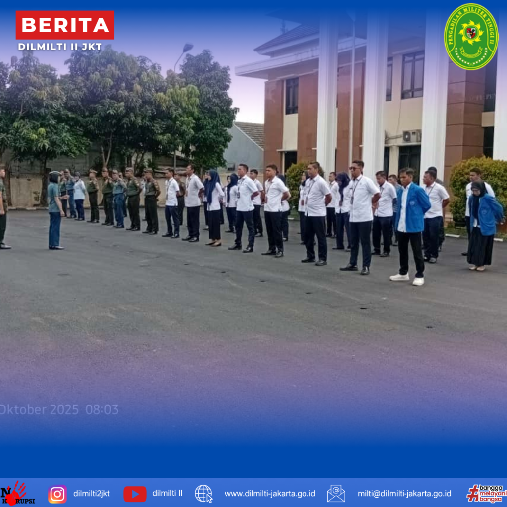 Jakarta, 13 Oktober 2025. Apel pagi pada Senin ini diambil langsung oleh Kepala Pengadilan Militer Tinggi II Jakarta Laksamana Pertama TNI Tuty Kiptiani. Beliau dalam pelaksanaan apel selain mengecek kedisiplinan anggota juga memeriksa langsung kerapihan para anggota baik Hakim maupun staff. Dengan kedisiplinan dan penampilan yang rapi maka dapat tercermin bagaimana kita menyelesaikan tugas sehari hari sebagai seorang Pegawai Pemerintah.