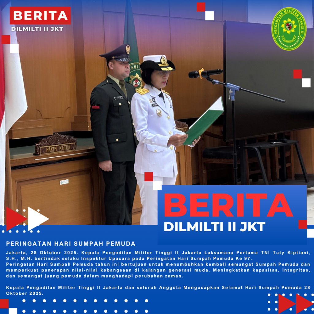 Kepala Pengadilan Militer Tinggi II Jakarta dan seluruh Anggota Mengucapkan Selamat Hari Sumpah Pemuda 28 Oktober 2025.