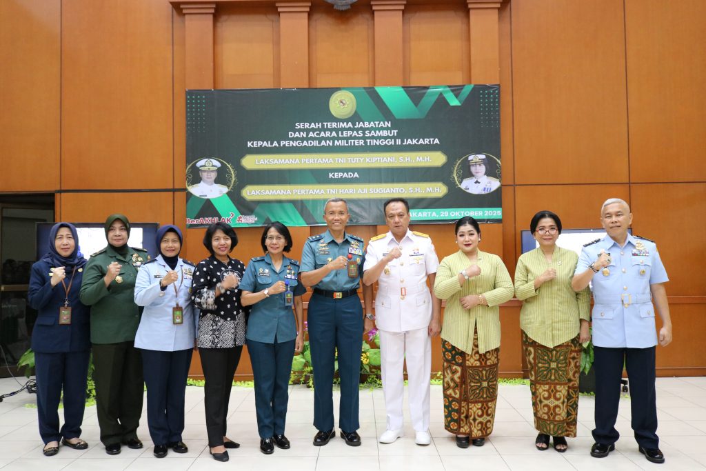 Jakarta, 29 Oktober 2025. Pengadilan Militer Tinggi II Jakarta mengadakan acara pisah sambut Kepala Pengadilan Militer Tinggi II Jakarta dari Laksamana Pertama TNI Tuty Kiptiani, S.H., M.H. kepada Laksamana Pertama TNI Hari Aji Sugianto, S.H., M.H.