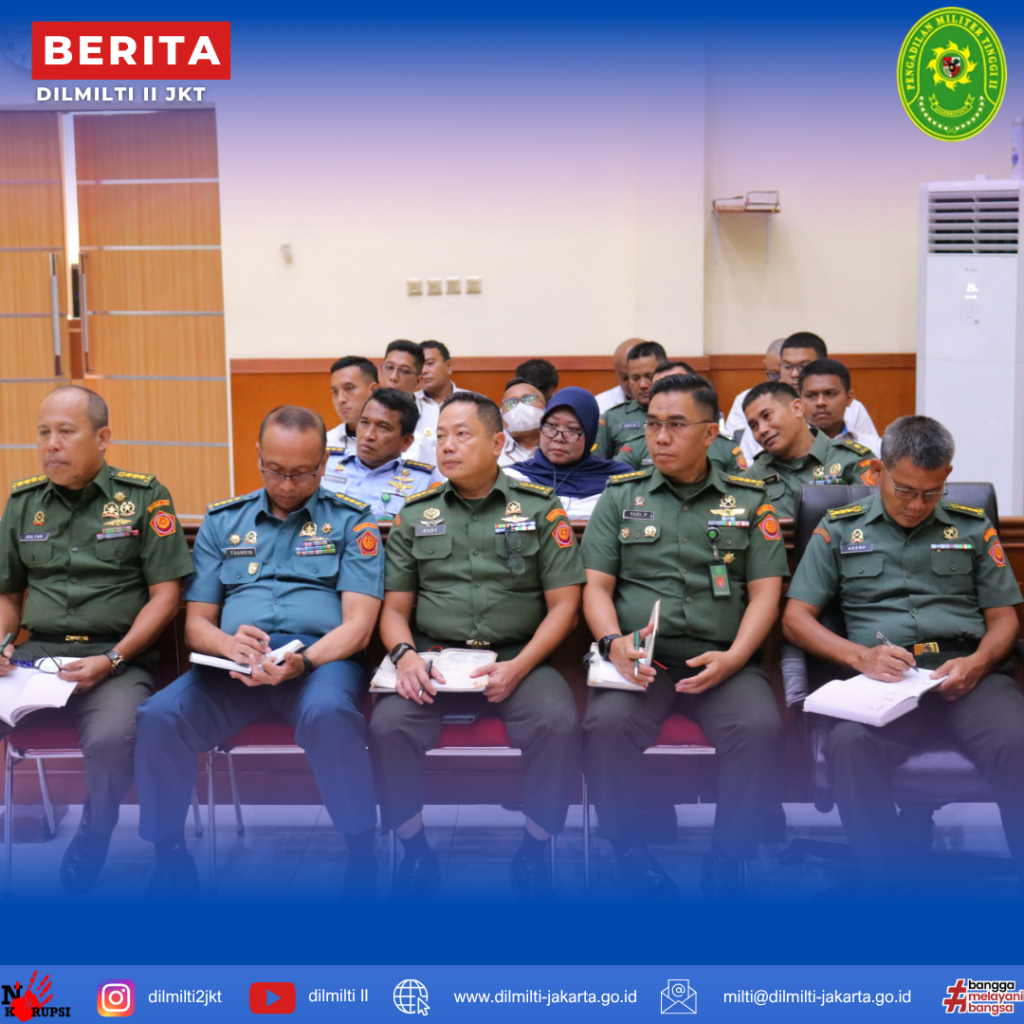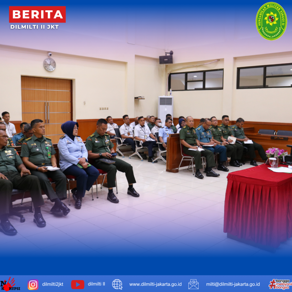 Jakarta, 03 November 2025. Kepala Pengadilan Militer Tinggi II Jakarta Laksamana Pertama TNI Hari Aji Sugianto, S.H., M.H. memberikan pembinaan kepada seluruh anggota untuk pertama kalinya sebagai Kepala yang baru, di mana beliau telah Serat Terima dari Kadilmil I Medan pada 29 Oktober 2025.