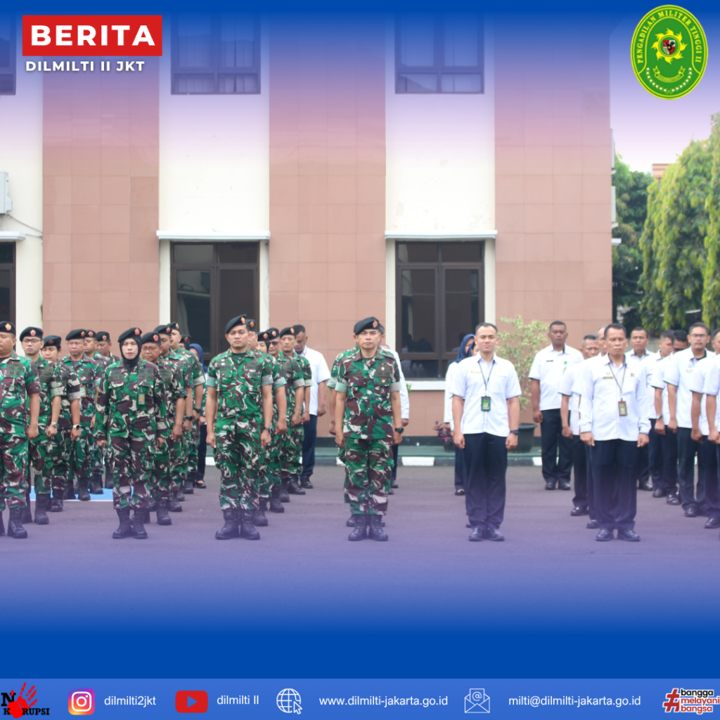 Apel gabungan yang diikuti oleh Dilmiltama, Dilmilti II Jakarta dan Dilmil II-08 Jakarta dilaksanakan pada 6 April 2026, di lapangan apel dengan pimpinan Mayor Jenderal TNI Faridah Faisal, S.H., M.H. Kegiatan ini menjadi momentum penting untuk kembali memperkuat disiplin, semangat kerja, serta kebersamaan setelah menjalani libur Hari Raya Idul Fitri 1447 Hijriyah.